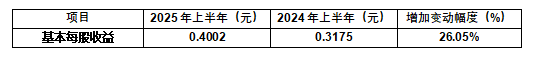 基本每股收益为0.4002元/股,相比上年同期的0.3175元/股,增长26.03%。这意味着股东每持有一股所能享有的公司盈利增加,股东回报得到提升。