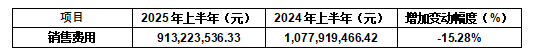 销售费用为9.13亿元,较上年同期的10.78亿元减少15.28%。主要是市场推广费减少与销售薪酬较同期综合影响所致。