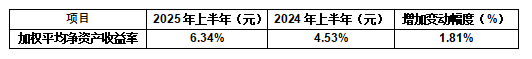 加权平均净资产收益率为6.34%,上年同期为4.53%,增加了1.81个百分点。这表明公司运用净资产获取利润的能力增强,资产运营效率有所提升。
